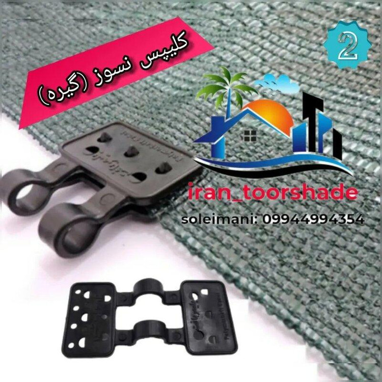 کلیپس یا گیره نسوز کوچک جهت نصب تور شید سایبان. دارای مواد آنتی یو وی دار نسوز در برابر نور خورشید.