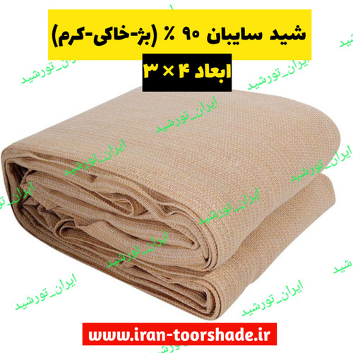 سایبان شید بژ ۹۰٪ (خاکی-کرم) ابعاد (4 * 3) دوردوزی شده و حلقه دار