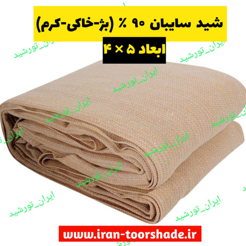 شید سایبان ۹۰٪ خاکی (بژ-کرم) ابعاد( 5 * 4 ) دوردوزی شده و حلقه دار